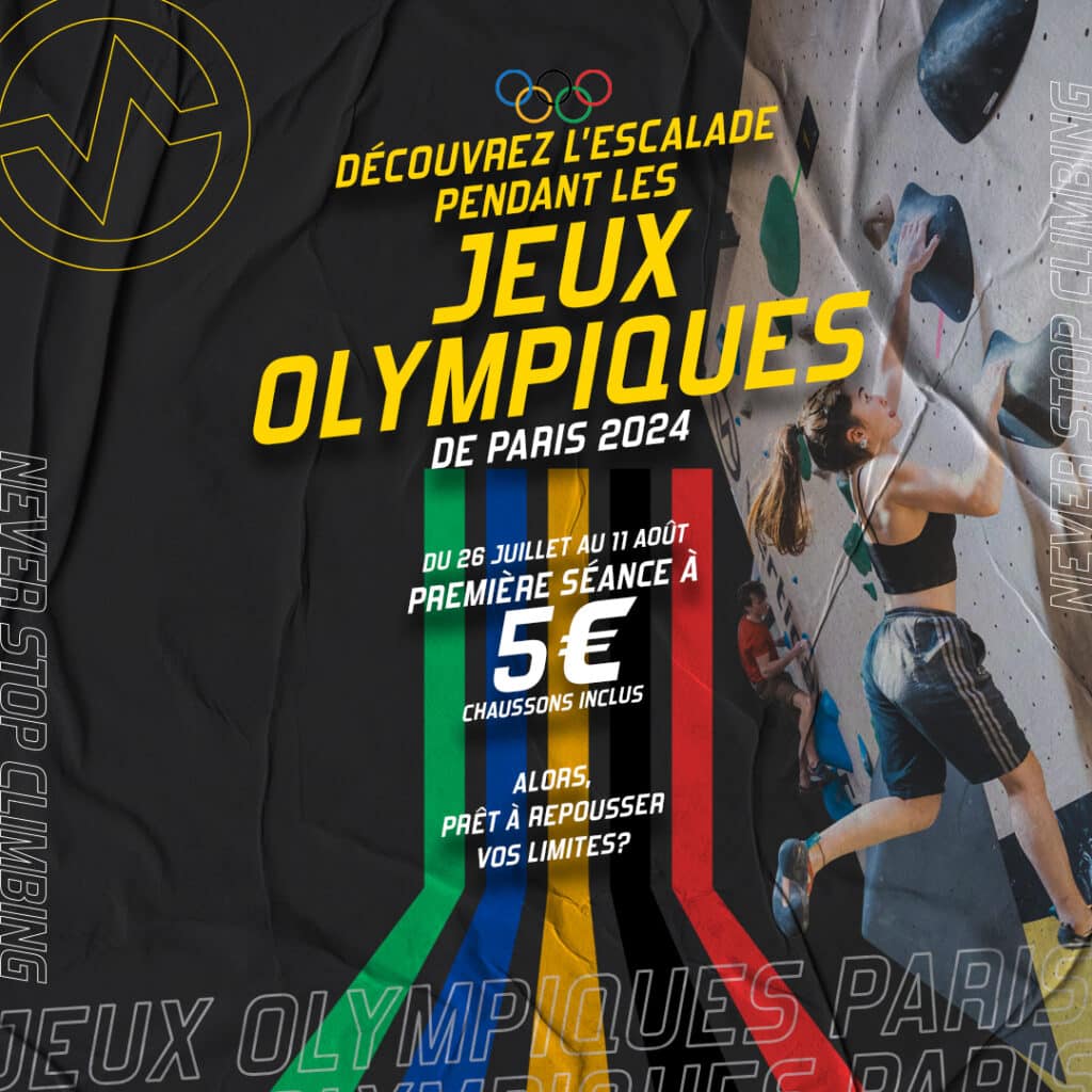 Nous y sommes ! Les Jeux Olympiques démarrent cette semaine, et Vertical’Art se joint à la fête. Les Jeux Olympiques sont l’occasion parfaite de découvrir un nouveau sport à la télévision, mais aussi de le pratiquer. Pour cet évènement exceptionnel, Vertical’Art Rungis vous invite à découvrir l’escalade avec une offre spéciale première visite ! Du samedi 26 juillet au dimanche 11 août, la première séance d’escalade sera à 5€ pour tous les nouveaux grimpeurs dans notre salle d’escalade.
